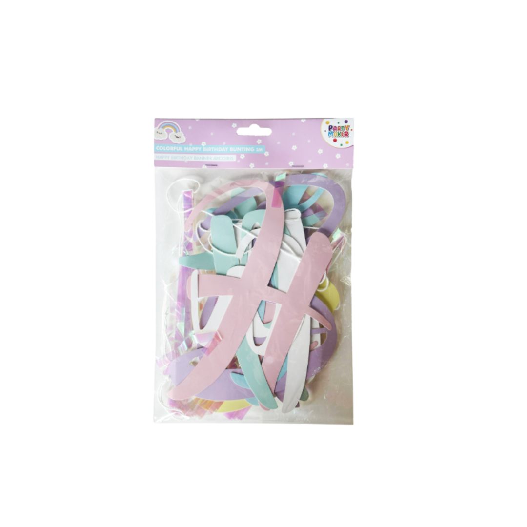 Happy Birthday Banner con 2 tassels en la orilla, ideal para darle un toque lindo a tu decoracion en tonos pastel.