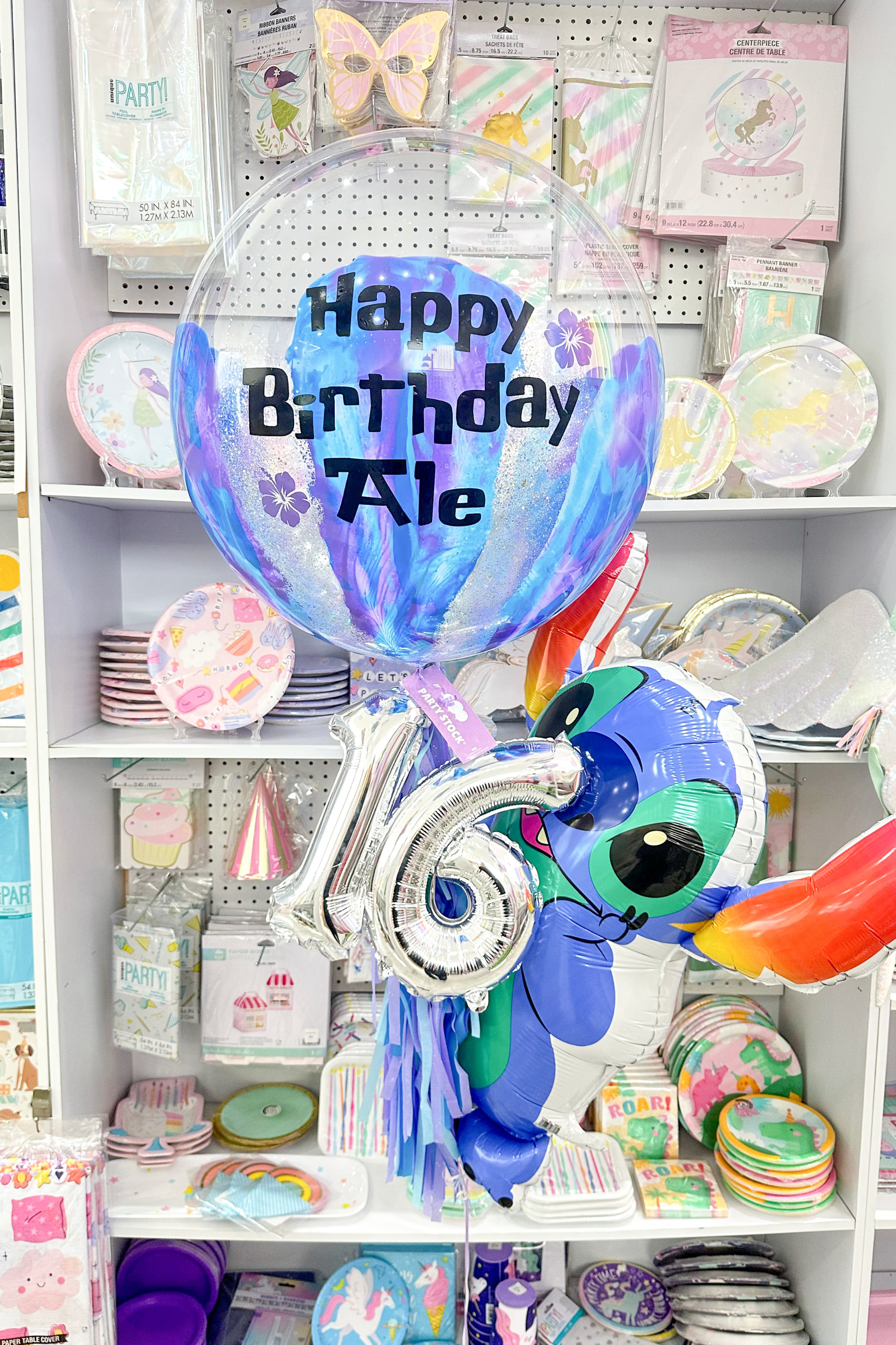 Haz que tu celebración sea inolvidable con este bouquet de globos con temática de Stitch. Un arreglo lleno de ternura, perfecto para niños, fans del personaje o cualquier ocasión especial.
