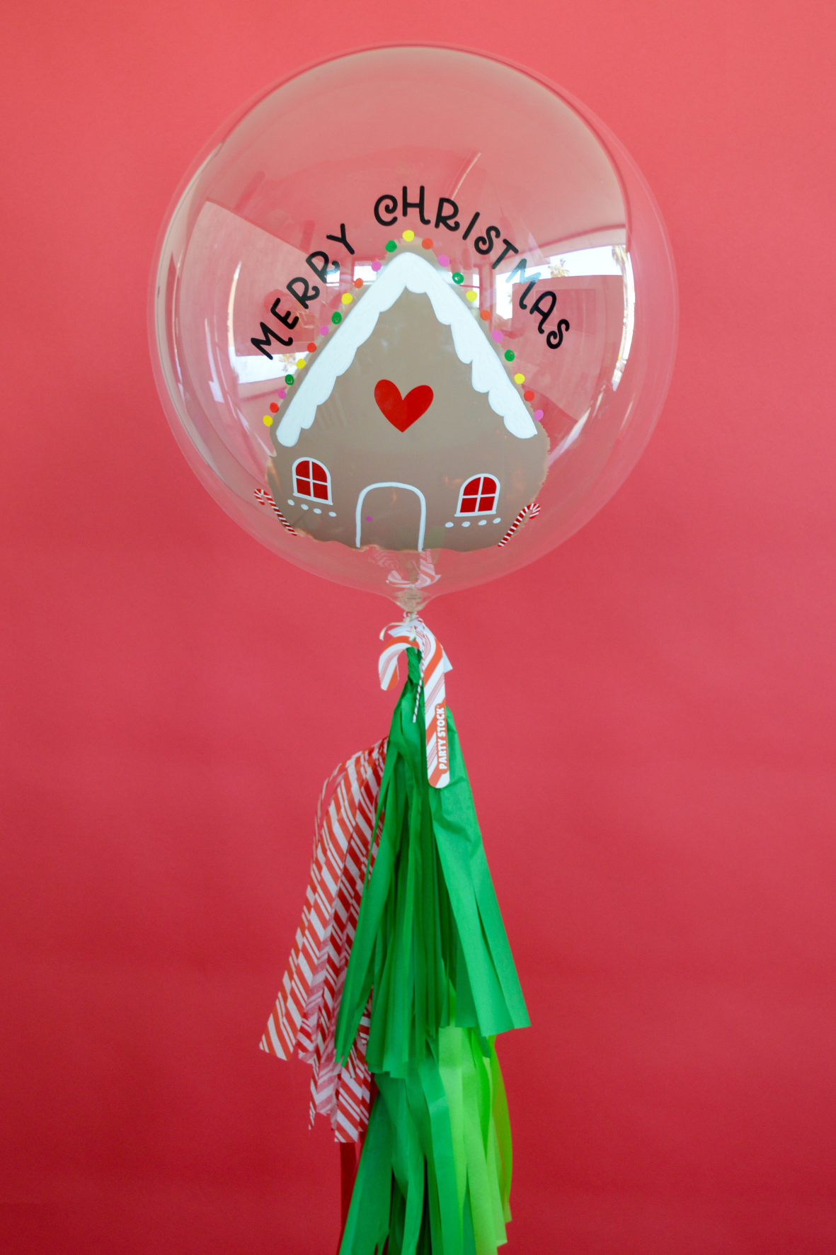 • Globo burbuja mediana 24", inflado con helio. Incluye una frase en vinil. Incluye guirnalda decorativa.
