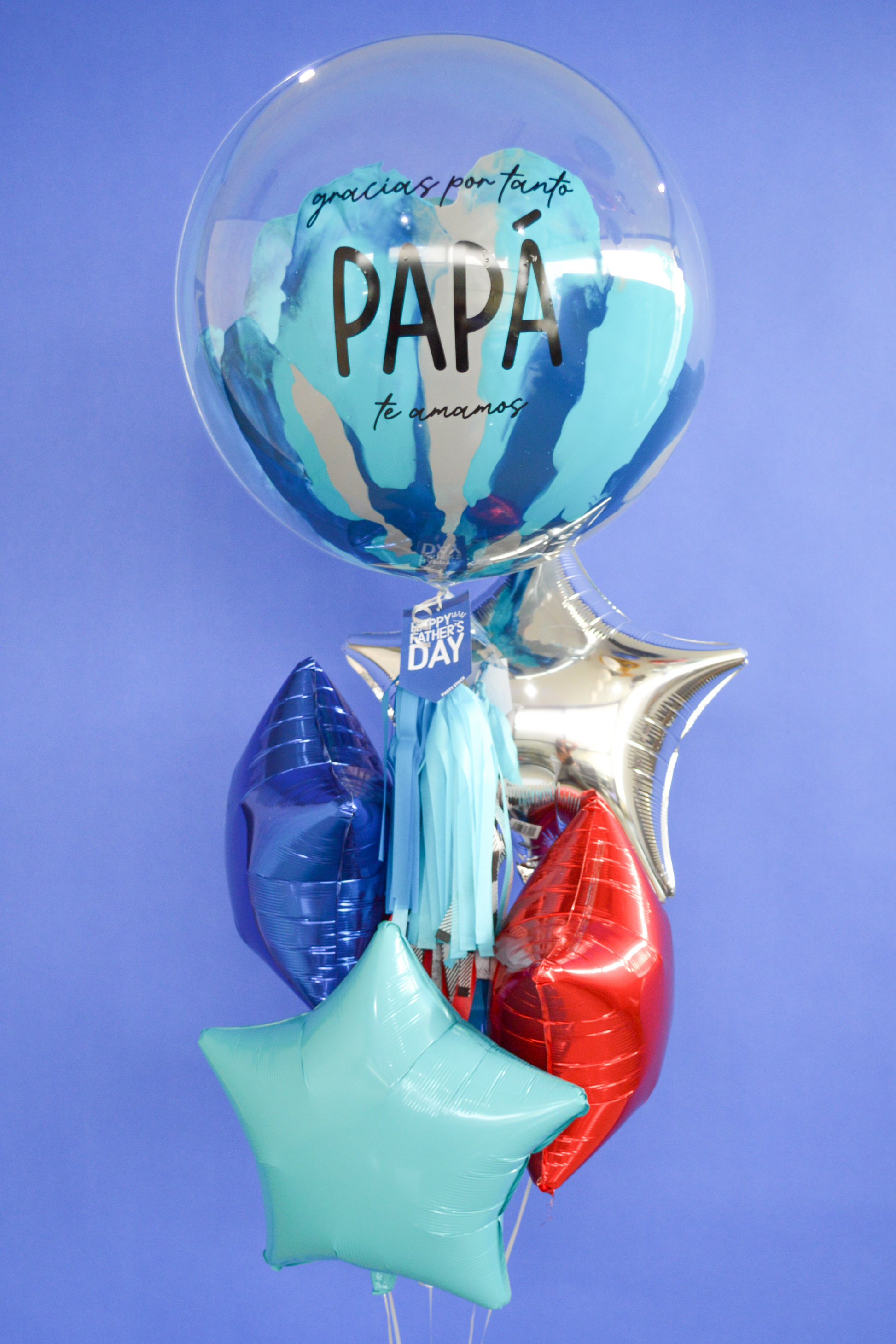 • Burbuja Grande personalizada con vinil a elegir, 4 estrellas metálicas en combinación.