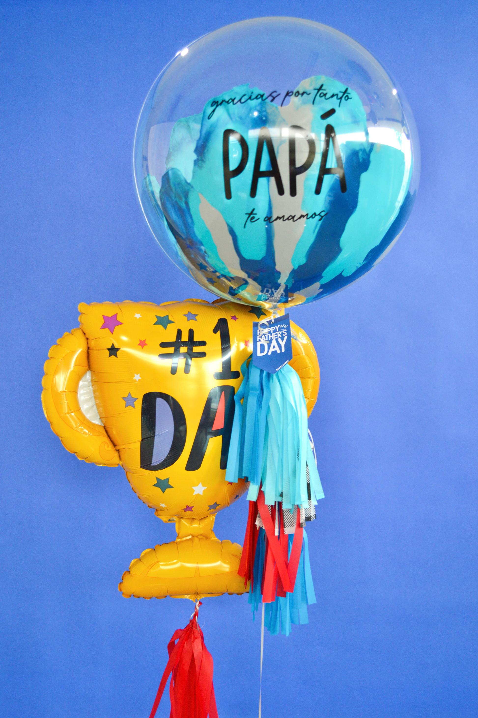 • Burbuja Grande personalizada con vinil a elegir, globo jumbo de trofeo.