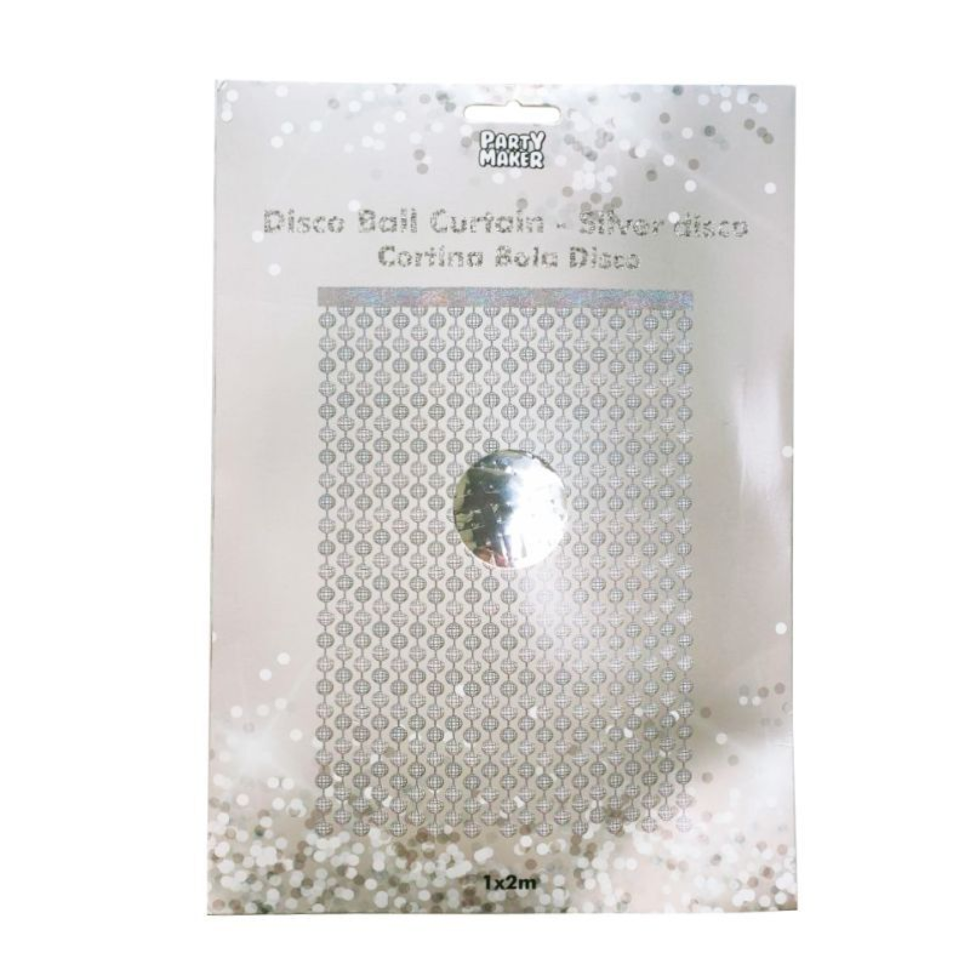 Cortina Metálica de Bola Disco, medidas 1x2m. Diseñada para ocasiones especiales o para darle un toque cool a tus celebraciones. Esta cortina destacan por su diseño de bola disco moderno.