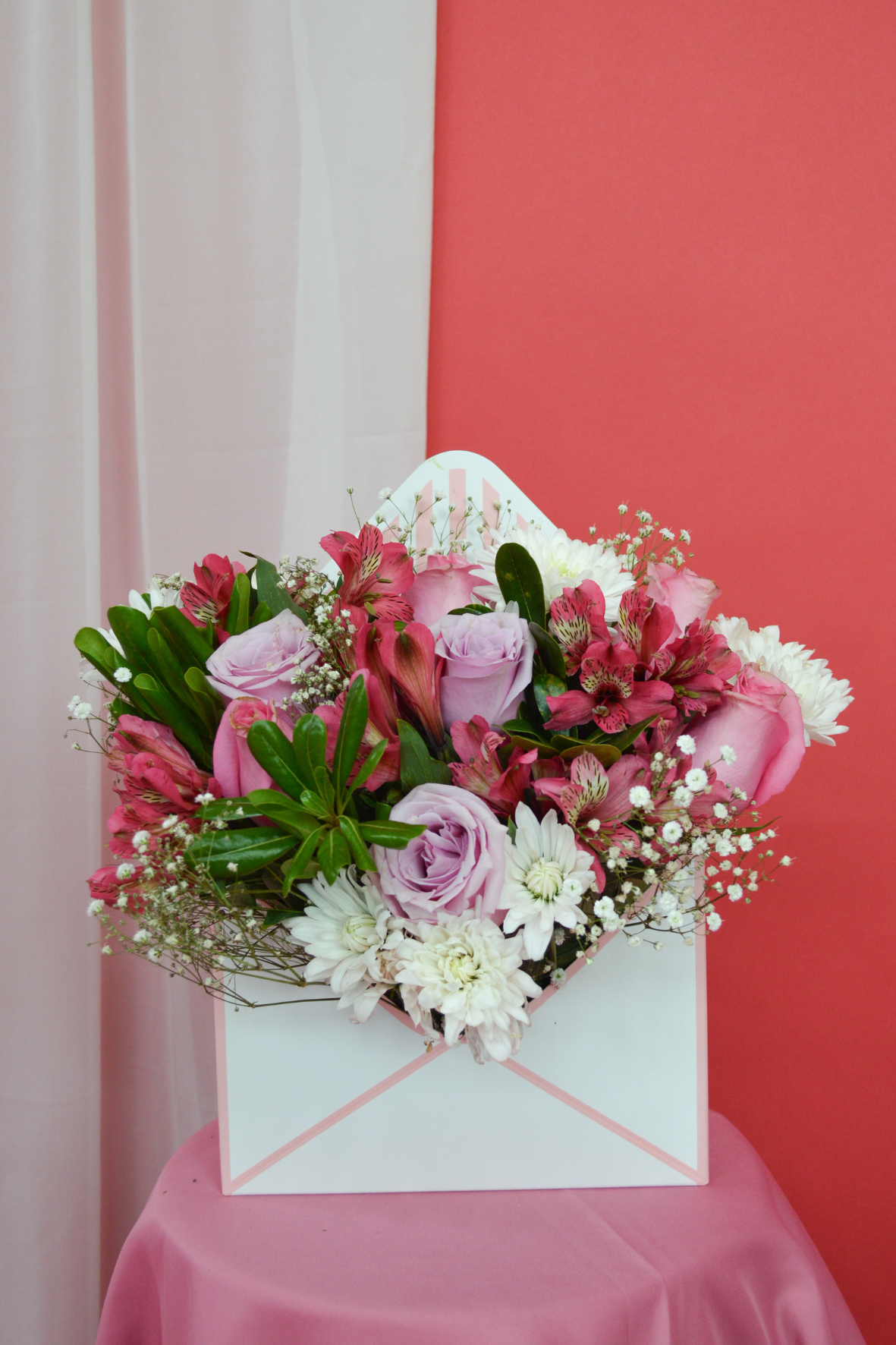 Hermoso ramo de flores en nuestra caja con forma de sobre edición San Valentín
