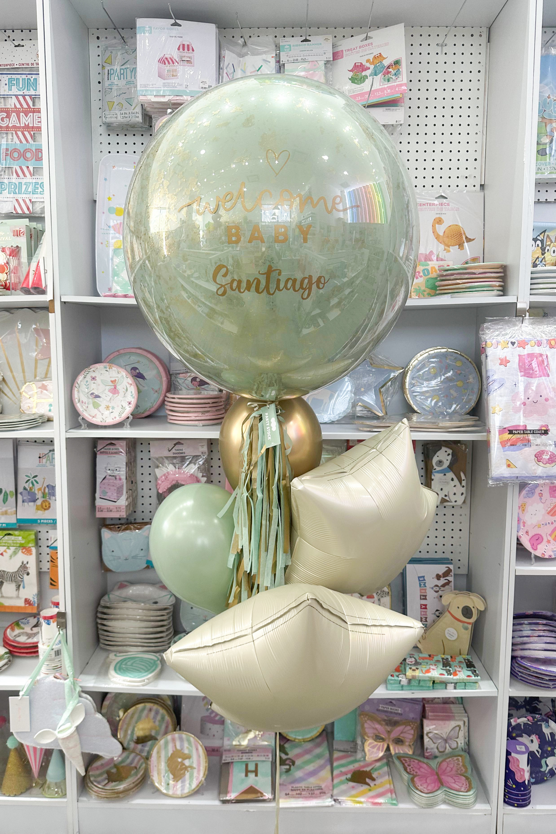 Globo Bienvenida Bebé Olivo Dorado