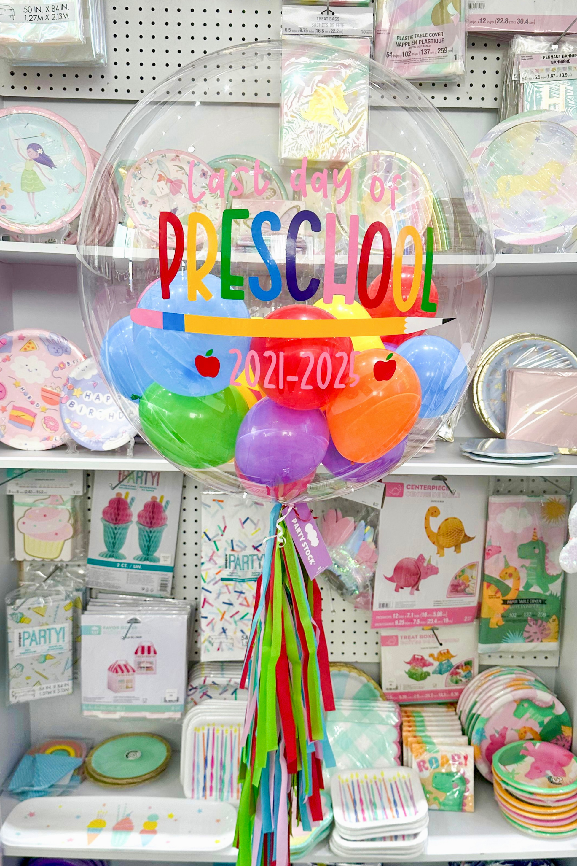 Este bouquet incluye un globo burbuja grande 32" personalizado con vinil, globos pequeños de colores dentro, una guirnalda decorativa, tag y contrapeso. Ideal para graduación. Disponible para entrega local o recogida en sucursal.