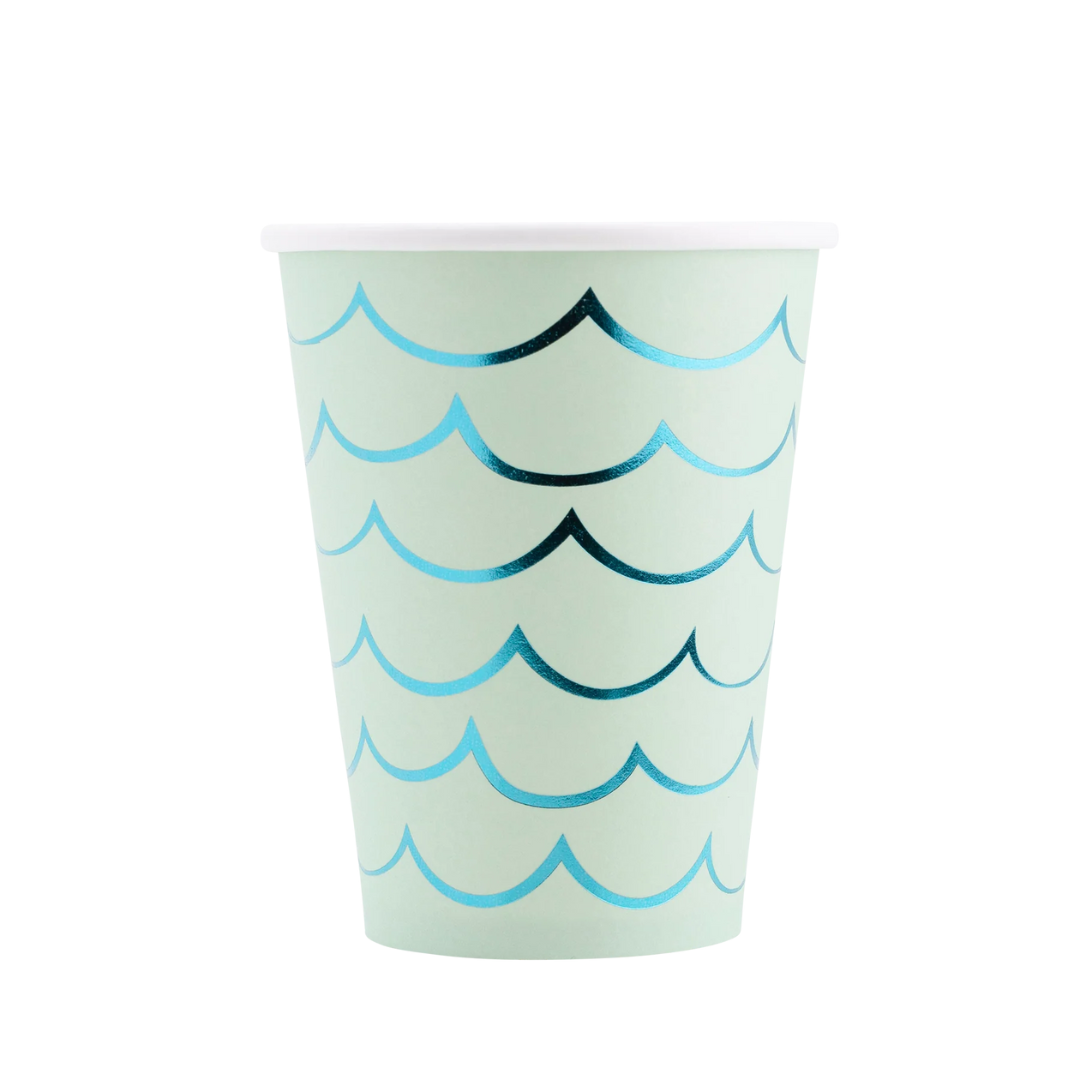 Get your party started with these Mermaid Tail Paper Party Cups! With an adhesive tail and aqua foil, these cups are perfect for any under the sea themed celebration. Embrace your inner mermaid and make a splash with these quirky and fun cups.