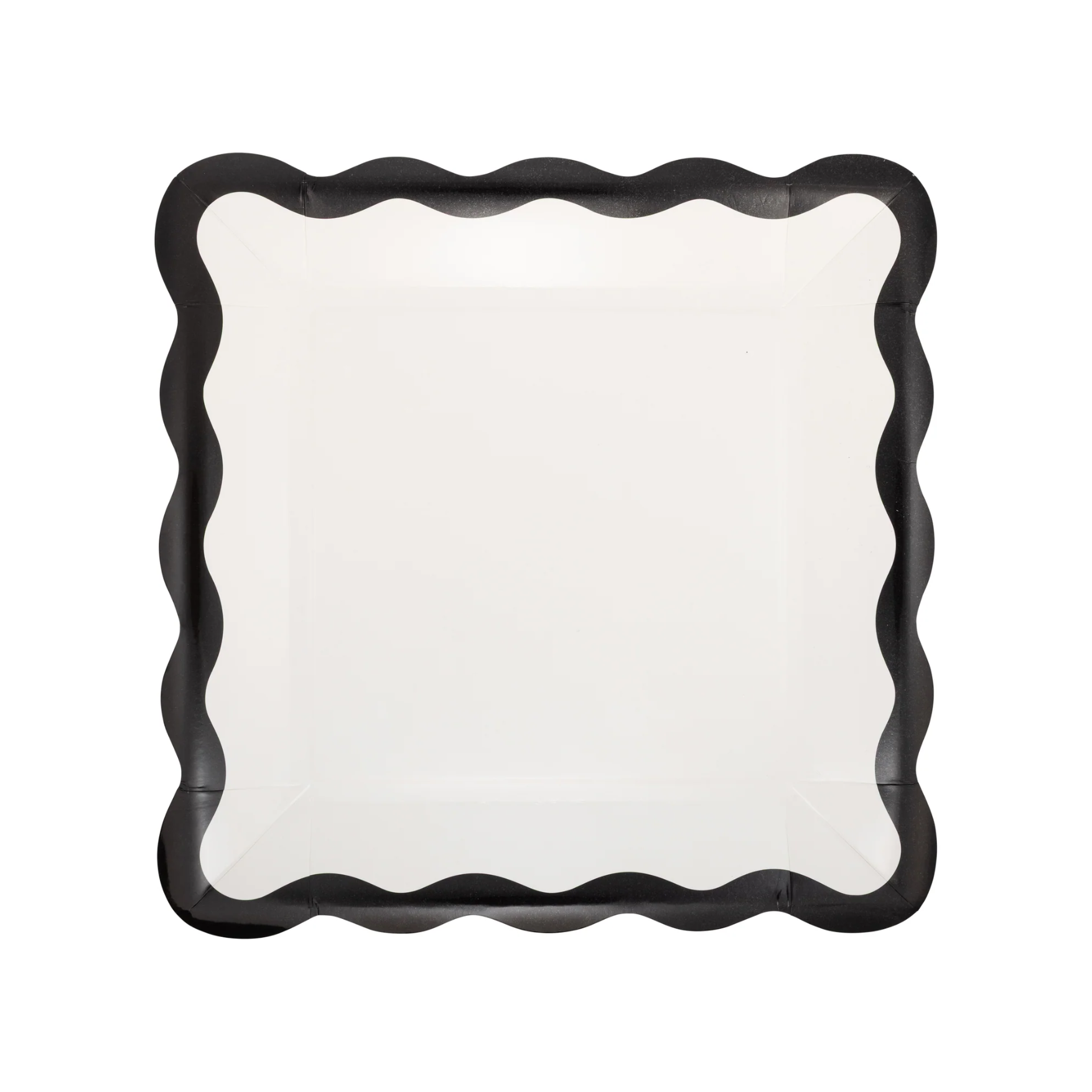 • Incluye 8 platos de papel en forma cuadrada con borde ondulado